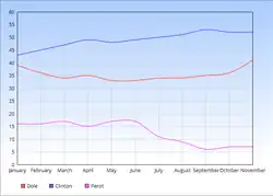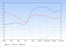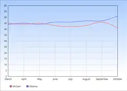 - ^ a b c d e f g h i j k l m n o p q r s t u v "Gallup Presidential Election Trial-Heat Trends, 1936-2008". gallup.com. Gallup, Inc. Archived from the original on June 30, 2017. Retrieved August 30, 2012.