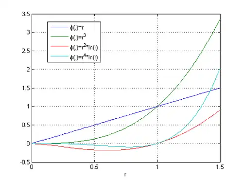 Other values of the exponent are not useful (such as ), because a solution of the interpolation problem might not exist. To avoid problems at (since ), the polyharmonic RBFs with the natural logarithm might be implemented as: