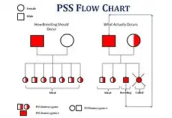 Porcine stress syndrome, also known as malignant hyperthermia or PSS, is a condition in pigs. It is characterised by hyperthermia triggered by stress, anaesthesia with halothane or intense exercise. PSS may appear as sudden death in pigs, often after transport. It is an inherited, autosomal recessive disorder due to a defective ryanodine receptor leading to huge calcium influx, muscle contracture and increase in metabolism.
