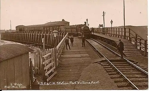 Port Victoria railway station is a disused station in Kent, United Kingdom, which opened on 11 September 1882 and closed in 1951. It was located at the head of a 400-foot (120 m) long timber pier reaching in the River Medway estuary.