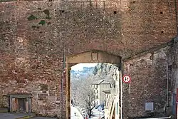 The Porta di Fontebranda or Fontebranda Gate is one of the last remaining gates in the medieval walls of Siena. It is located on via di Fontebranda, in Siena, region of Tuscany, Italy. 43°19′06.79″N 11°19′34.09″E / 43.3185528°N 11.3261361°E / 43.3185528; 11.3261361