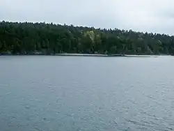 Portland Island is an island of the Southern Gulf Islands of the South Coast of British Columbia, Canada. It is located in the Salish Sea west of Moresby Island and off the south tip of Saltspring Island, adjacent to the main BC Ferries route just offshore from the terminal at Swartz Bay at the tip of the Saanich Peninsula. It was named after HMS Portland, the flagship of Rear-Admiral Fairfax Moresby, Commander in Chief of the Pacific Station 1850–1853.[1]: 214