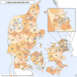 Postal codes in Denmark are determined by a four digit system that was introduced in 1967.[1] The only exceptions are five special purpose 3-digit codes.