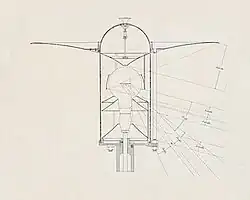 After the Paris exhibit, Louis Poulsen and Henningsen were awarded a contract to provide lighting for the newly constructed Forum building in Copenhagen. The building was planned to house an international car exhibition. Rather than using beam lighting, which would illuminate the cars' roofs and hoods but leave the sides of the vehicles dark, Henningsen iterated on the Paris Lamp design to create a lamp that would channel the light in oblique paths.[16] The Forum lamp had three shades, with diameter proportions of the shades following a 4:2:1 ratio. This ratio allowed the upper shade to reflect 50% of the light and the middle shade and bottom shade to reflect 25% each.[16] The lamp Henningsen created for Forum would be the basis for the three-shade system. The design was subsequently developed into a comprehensive system of lamps of different sizes, colors, materials, types (floor lamps, table lamps and chandeliers).[17]