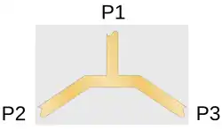 The earliest transmission line power dividers were simple T-junctions. These suffer from very poor isolation between the output ports – a large part of the power reflected back from port 2 finds its way into port 3. It can be shown that it is not theoretically possible to simultaneously match all three ports of a passive, lossless three-port and poor isolation is unavoidable. It is, however, possible with four-ports and this is the fundamental reason why four-port devices are used to implement three-port power dividers: four-port devices can be designed so that power arriving at port 2 is split between port 1 and port 4 (which is terminated with a matching load) and none (in the ideal case) goes to port 3.[25]