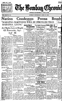 - ^ "Mahatma martyred will be stronger than Mahatma living. Act Marks Lowest Depth of Perversity, Says Asaf Ali". The Bombay Chronicle. 27 June 1934. p. 1.