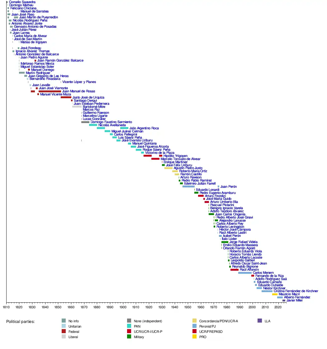 Timeline of head of states of Argentina by affiliation