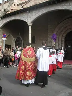 The 2007 motu proprio Summorum Pontificum had authorized use of the 1962 Roman Missal by all Latin Church priests as an extraordinary form of the Roman Rite without limit when celebrating Mass "without a congregation".[6] Its use for Mass with a congregation was allowed with the permission of the priest in charge of a church for stable groups attached to this earlier form of the Roman Rite, provided that the priest using it was "qualified to do so and not juridically impeded" (as for instance by suspension).[7] That was abrogated by the 2021 motu proprio Traditionis custodes that emphasized deference towards the Mass of Paul VI and added restrictions to which clergy could perform the Roman Rite according to the pre-Vatican II form.[8][9]