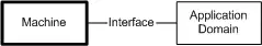 The problem context contains the machine and the application domain. The machine interface is where the Machine and the application domain meet and interact.