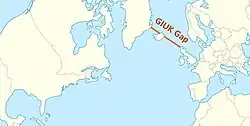 The United States views control of the GIUK Gap (Greenland–Iceland–UK Gap), as critical to the maritime defense of the Eastern United States, and unimpeded access to Greenland as necessary for control of the gap.[51][54] A wartime priority of the United States is to "close the gap", or prevent an adversary navy from exiting the Norwegian Sea and approaching the United States.[55][56] In 1957, the United States led Exercise Strikeback, the largest peacetime naval exercise in history, focused on stopping an aggressive "Orange Fleet" from transiting the gap, which was to be accomplished by means of a naval blockade involving hundreds of warships.[57][58][59] During much of the Cold War, the importance of closing the gap was to prevent Soviet SSBNs from sailing to within firing range of Washington, D.C. and New York City.[55]
