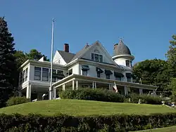 The neighborhood included three "family enclaves" that are associated with individuals who were active in Davenport's commercial and industrial history in the late 19th and early 20th century.[4] The Lanes lived on the upper end of Mississippi Avenue. Joseph R. Lane (1017 Mississippi) was an attorney, businessman, investor, and a one-term Republican U.S. Representative from Iowa's 2nd congressional district. His carriage house is one of the few of its size that remain in the city.[4] One of his sons, Dick (1005 Mississippi), had a large cross-gambrel house to the south. Another son, Reed (1008 Mississippi), lived across the street in a multi-gabled house. The Richardson family lived beyond Prospect Park. They were involved with the Davenport Democrat and the Lee newspaper syndicate. Jenness, who was secretary and treasurer of the Democrat Company, lived in a frame Neoclassical house at 1802 East River Drive. His brother Morris, secretary of the Richardson Land and Timber Company, lived next door in a frame Shingle style house at 1810. The McClelland's were involved in a major 19th century contracting firm of T.W. McClelland & Company. Wilson, who was heir to the estate, lived at 1820 East River Drive, and his mother, Anna, lived at 1616 Prospect Drive overlooking the park.