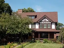 Other significant people to Davenport economic life who lived in the neighborhood included Charles J. von Maur (1800 East River Drive) and Rowland Harned (830 Mississippi).[4] They were partners in a local department store, Harned-Von Maur, that grew into the department store chain Von Maur. Davenport architect Parke T. Burrows, of the prominent local firm of Temple and Burrows, designed his Tudor Revival-style home at 935 Mississippi Avenue.[4] He lived next door to lumber baron Edward S. Crossett in another Burrows-designed Tudor house. Other people involved in the lumber industry included Jules J. DeLescaille (901 Mississippi) and Ralph Lindsay, vice-president of the Lindsay-Phelps Company (224 Prospect Terrace).