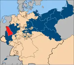 ![]() The province of Jülich-Cleves-Berg (red), within the Kingdom of Prussia (dark blue), within the German Confederation (tan) | |||||||||||