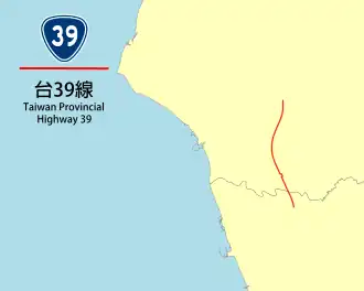 Provincial Highway 39 is a Taiwanese highway that starts from Xinhua, Tainan City and ends in Alian District, Kaohsiung. The highway connects THSR Tainan Station with Tainan City and northern Kaohsiung City, and runs along the underpass of the elevated viaduct for high-speed rail. The route length is 18.83 kilometres (11.70 mi) .[1]