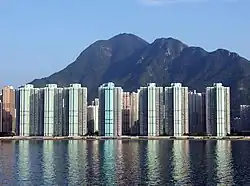 Kam Fung Court (Chinese: 錦豐苑) is a HOS court in Ma On Shan, built on the reclaimed land along Tide Cove shoreline.[20] It has totally nine blocks built in 1996. However, three of the blocks, Kam Lei House, Kam Ho House and Kam Lan House, were unsold until the sales of surplus HOS flats Phase 3 and 4 in 2008.[21][22] In the late 1990s, Kam Fung Court suffered from serious subsidence problem on its newly reclaimed land.[23][24]
