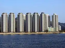 Chung On Estate (Chinese: 頌安邨) is the fourth public housing estate in Ma On Shan.[5][6] It is built on the reclaimed land approaching Sha Tin Hoi and Tolo Harbour.[7] It consists of 5 residential blocks completed between 1996 and 2001, offering a total of 3,000 units. Besides, there is a shopping mall (Chung On Shopping Centre) inside of the housing estate.