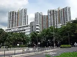 Lung Hang Estate (隆亨邨) is located between Hin Keng Estate and Sun Chui Estate, and consists of 6 residential blocks completed in 1983 and 1985 respectively.[28]