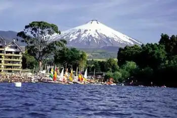 Pucón (Mapudungun: "entrance to the cordillera") is a Chilean city and commune administered by the municipality of Pucón. It is located in the Province of Cautín, Araucanía Region, 100 km to the southeast of Temuco and 780 km to the south of Santiago. It is on the eastern shore of Lake Villarrica, and Villarrica volcano is located roughly 17 km to the south.