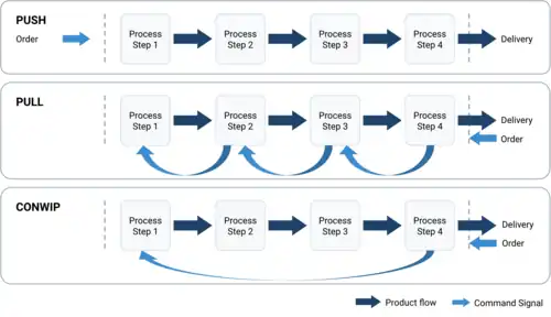 - ^ a b Liberopoulos, George (2013), Smith, J. MacGregor; Tan, Barış (eds.), "Production Release Control: Paced, WIP-Based or Demand-Driven? Revisiting the Push/Pull and Make-to-Order/Make-to-Stock Distinctions", Handbook of Stochastic Models and Analysis of Manufacturing System Operations, International Series in Operations Research & Management Science, vol. 192, New York, NY: Springer, pp. 211–247, doi:10.1007/978-1-4614-6777-9_7, ISBN 978-1-4614-6777-9, retrieved 2021-05-02