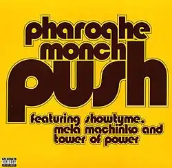 "Push" is the first single from Pharoahe Monch's 2007 album Desire. The single was released September 11, 2006 as a 12" vinyl, but was later released as a CD single and a digital download. Produced by Pharoahe Monch, the song features an upbeat sound and a prominent use of horns played by Tower of Power. It features encouraging raps provided by Pharoahe Monch as well as background vocals sung by MeLa Machinko and Showtyme. The song contains an interpolation from Joe Zawinul's "Country Preacher." Its music video, directed by Paul Minor, features Monch rapping during the New York City blackout of 1977. The song is also featured in the NBA series 2007 video game NBA Street Homecourt.