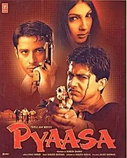 Pyaasa (transl. eternally thirsty) is a 2002 Indian Hindi-language film directed by A. Muthu. The film tells the story of Suraj (Aftab Shivdasani), a young man, full of dreams, aspirations, and desire but no money. He is desperate for money. He meets the anchor of his life, Sheetal Oberoi (Yukta Mookhey in her first major leading role in Hindi cinema), boss of a Mega Corporate company, who has a lot of money with her.[1][2]
