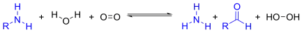 amine + H2O + O2 ⇌ aldehyde + NH3 + H2O2