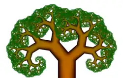 The Pythagoras tree is a plane fractal constructed from squares. Invented by the Dutch mathematics teacher Albert E. Bosman in 1942,[1] it is named after the ancient Greek mathematician Pythagoras because each triple of touching squares encloses a right triangle, in a configuration traditionally used to depict the Pythagorean theorem. If the largest square has a size of L × L, the entire Pythagoras tree fits snugly inside a box of size 6L × 4L.[2][3] The finer details of the tree resemble the Lévy C curve.