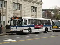 As part of the widening project, in 1925 it was proposed to replace the trolley franchise with bus service.[26] By 1927, civic groups from communities along the Queens Boulevard line began to push a takeover of the line's operations by the Fifth Avenue Coach Company to convert it to bus service.[27][28][29] In October 1935, the city announced plans to convert the line into a bus route, as part of a deal with the railway to remove its tracks and facilitate the renovation project.[17] In 1936 the railroad company would reorganize as the Manhattan and Queens Bus Corporation.[6] On December 13 of that year, a ten-year bus franchise was awarded to the company by the office of Mayor Fiorello H. La Guardia. In exchange, the company would pay the city $318,000 in back taxes, and the two parties ended two decades of litigation over the removal of the trolley tracks.[16][30][31] Bus service began on April 17, 1937, replacing trolley service along Queens Boulevard.[1][9][32] The operations of the Manhattan and Queens Transit Company were acquired by Green Bus Lines in 1943, and the Q60 became part of Green Lines' operations.[33]