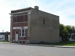 The fine yellow brick town hall and "opera house" remains marginally in use, though its auditorium has long since been closed to public use because it falls short of modern standards of safety and the town cannot bring it up.[24] Its companion building, Qu'Appelle High School, built in similar style in identical yellow brick, closed in 1973 and was demolished in 1975. The Queen's Hotel, built in 1884 (early on with the competitor of Smiths Hotel, far more briefly surviving) continued to operate, latterly largely as a town pub albeit that alcohol was briefly banned for drink in Saskatchewan after World War I, as vastly more lengthily in the USA. After steady commercial decline for many years it was destroyed by fire in 2003.