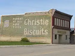 Well into the 20th century there was still a train station, some half-dozen grain elevators, a bank, post office, butcher, two general stores, a hardware store, pharmacy, the hotel — "the Queen’s Hotel, which officially opened in 1884, was lost in an early morning blaze on April 16, 2003"[28] — (and "beverage room," in the terminology of the early 20th-century Canadian West, though closed from 1915 to 1925 under Premier Walter Scott's prohibition and temperance legislation[29]), barber shop, firehall, law office, numerous service stations, several cafés, cinema (later converted to a grocery store) and a covered rink.[30] In the 1890s, there was "a flour mill, a creamery [and] a felt and boot factory."[9]
