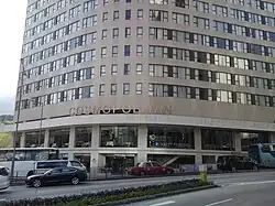 Hopewell Centre or QRE Plaza is a 25-storey building located at No. 202 Queen's Road East, developed by Hopewell Holdings.[31][32] The plaza was completed in 2007 and contains a shopping centre, restaurants and health clinics.[33][34] QRE Plaza measures nearly 89 metres (292 ft) in height.[35] The building has a Gross floor area (GFA) of about 77,000 square feet (7,200 m2).[36][37]