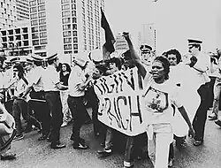 A group who fought for civil rights prior to the formation of the QCCL was The Queensland Civil Liberties League, who were active in supporting a campaign to vote no to banning the Communist Party in Australia. The QCLL, QCCL and University of Queensland Student Union organised a civil liberties street march from the university's St Lucia campus to Roma Street, Brisbane on September 8, 1967, with estimates of 4000 staff and students having participated.[18][19] In 1968, one of the first moves by the council to support freedom of speech in Queensland, was when council president Jim Kelly supported Brisbane's first Nationalist Socialist Party meeting. He was published in The Australian stating 'the Council supported the principle of freedom of speech even for repugnant doctrines such as the Nazi Party'.[20]
