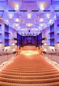- The Concert Hall is the second largest venue in QPAC, with a seating capacity of approximately 1,600 (1,800 if the choir balcony seats are used). It is Brisbane's main venue for orchestral performances although it is also used for comedy performances, graduation ceremonies, awards presentations and even rock concerts. The venue features a 6,566 pipe Klais organ which was built in 1986.[8] Due to the overwhelming demand placed on the entire venue for traditional theatrical performances, in 2014 a creative solution was achieved by the addition of a removable proscenium arch and stage mechanisms for the Concert Hall increasing the type of performances possible in this theatre.