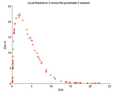 The Lorenz map is the relation between successive maxima of a coordinate in a trajectory. Consider a trajectory on the attractor, and let be the n-th maximum of its x-coordinate. Then - scatterplot is almost a curve, meaning that knowing one can almost exactly predict .[8]