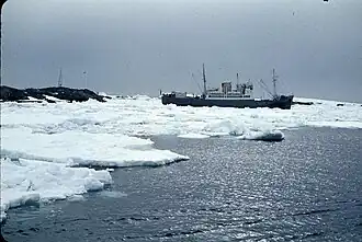 Biscoe's first visit to Halley Research Station, in 1959/60 was under the veteran captain, Bill Johnston.[2]