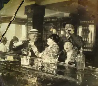 During the Prohibition in the United States, the sale of alcoholic beverages was still legal in Cuba. Pappy, in his trademark white linen suit, would often greet American tourists at the airport or steamship docks with a glass of alcohol. Pappy greeted and entertained many famous American vagabonds, celebrities, tourists, mafiosos, politicians, artists, and socialites, among others, introducing many of them to the Daiquiri the moment they landed in Cuba.[2] For the upper echelons of the global holiday-seeking elite, Pappy would often give private guided tours of Havana, before bringing his guests to the infamous "Bacardi Club," which was a secret VIP-only bar on the mezzanine level of the Bacardi Building, the first skyscraper in Havana.[3][4] While Pappy was certainly focused on foreign customers in order to increase Bacardi's reputation and revenue base in foreign and untapped markets, Pappy also made sure to entertain Cuba's local elite socialite class.