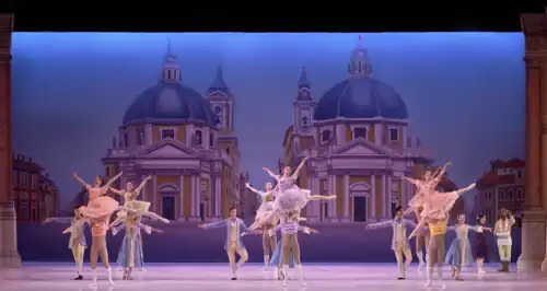 At the ballet school, Raffaella meets Ombroso, a charming young prince who is an incredible dancer. He practices a beautiful pas de deux with Raffaella and expresses his love for her. Then to her surprise he promises that he will make her a princess, and offers her a jeweled crown. Raffaella is tempted but when she chooses not to accept the crown, Ombroso becomes angry with her. He lashes out at Raffaella for rejecting his gift, and Raffaella realizes that he is a false prince.