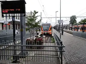 • Tallinn–Lelle–(Pärnu), 141.4 km (87.9 mi) (formerly 190.0km). The Lelle-Pärnu section was permanently closed for passenger operations on 8 December 2018 as it required a €17 million refurbishment. A rail service to Pärnu station will be resumed with the opening of the Rail Baltica line.[11][12] There was an international connection from Mõisaküla to Latvia, however trains stopped running to Mõisaküla in 1996.[13] The stretch Pärnu–Mõisaküla was abandoned in 2008.[14][15]