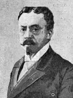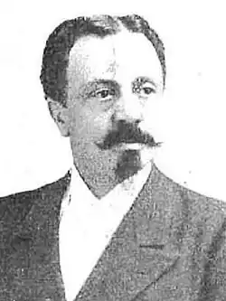 In the early 1890s fellow Traditionalists approached Altarriba cautiously as one of "fractious Carlists".[128] Some sources report him as championing a militant "de armas tomar" group, consisting mostly of the Navarros and the Gipuzkoanos.[129] Other episodes seem to counter this thesis indicating that he worked closely with the non-belligerent de Cerralbo,[130] together travelling across Spain during innovative political tours and delivering harangues,[131] also jointly with Carlist pundits like Vazquez de Mella;[132] residing in Madrid he customarily appeared in events staged in the capital.[133] As the colonial crisis of 1897 unfolded, he initially seemed leaning towards a bold action; he welcomed general Weyler, dismissed from Cuba, amongst the crowd shouting "Viva Cuba Española", but also a somewhat more ambiguous "a caballo mi general".[134] However, during the Spanish–American War Sangarrén was busy denouncing widely circulating rumors about another Carlist insurgency forthcoming as "a fable",[135] though it is not clear whether it was a pre-agreed propaganda smokescreen or a genuine effort. During La Octubrada, the series of minor Carlist revolts of October 1900,[136] he was in Paris,[137] which did not spare him detention by Guardia Civil the following month in Bilbao.[138] Also during persistent rumors of mid-1902[139] Altarriba spoke publicly against a Carlist military action.[140] The press reported him as an agreed Carlist candidate in the 1903 elections,[141] but he was not mentioned as running later on. None of the sources consulted mentions him politically active after that date; obituaries claimed he had been suffering from an unidentified longtime "enfermedad crónica";[142] his funeral was attended by the then Carlist political leader, Matías Barrio y Mier.[143]