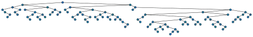 Another application of critical Galton–Watson trees (in the version where the root must be internal) arises in the Karger–Stein algorithm for finding minimum cuts in graphs, using a recursive edge contraction process. This algorithm calls itself twice recursively, with each call having probability at least of preserving the correct solution value. The random tree models the subtree of correct recursive calls. The algorithm succeeds on a graph of vertices whenever this random tree of correct recursive calls has a branch of depth at least , reaching the base case of its recursion. The success probability is , producing one of the logarithmic factors in the algorithm's runtime.[31]