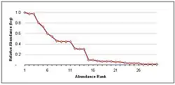 The curve is a 2D chart with relative abundance on the Y-axis and the abundance rank on the X-axis.