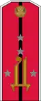 - Kornilov regiment: background of shoulder boards: black bottom, red top, white piping, white stripes for officers and white zigzag for generals;[3] in case of embroidered shoulder boards for parade uniform: white embroidery, piping and officer stripes split in two (black top, red bottom), while the zigzag of generals was of the same color as the embroidery.[4]