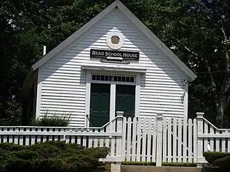 The Read School is a historic schoolhouse at 1670 Flat River Road in Coventry, Rhode Island, United States. Built around 1831, it is one of the oldest, and the best-preserved, of Coventry's 19th-century schoolhouses. It is a rectangular wood-frame structure measuring 18 feet (5.5 m) by 24 feet (7.3 m), with a gable roof. The south side, its main facade, has a pair of doors under a ten-light transom window and a shallow entry cover. Above this is a round window, a detail echoed on the north side. It served the town as a school until 1951, and was then used for storage. It is now leased by the town to the Coventry Historical Society, who conduct tours and hold meetings there.[2]