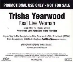 "Real Live Woman" is a song written by Bobbie Cryner and recorded by American country music artist Trisha Yearwood. It was released in January 2000 as the first single and title track from her album Real Live Woman. The song reached #16 on the Billboard Hot Country Singles & Tracks chart in April 2000.[2]