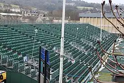 About a quarter of the Rec is leased to Bath Rugby during the rugby union season as a sports ground capable of holding 14,500 people. During the summer the rugby ground's temporary East Stand is removed to make way for cricket on a larger pitch. This cricket pitch is used for local contests and was used by Somerset County Cricket Club until 2011.[3] Parts of the eastern area of the Rec are used by Bath Hockey Club, Bath Croquet Club, Bath Drama Club, Bath Quidditch Club and for some tennis courts. Pitches are available for amateur sports such as Football, Volleyball and Lacrosse. There is a cricket pavilion at the William Street entrance to the ground. The council-run Sports and Leisure Centre is located on the southern edge of the Rec, accessed via North Parade.