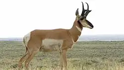 At first glance the Red Desert's largely dry, barren landscape seems an unlikely location for some 350 wildlife species and more than 1,000 plant species.[3] The sagebrush steppe and bunchgrass habitat support 40,000 to 50,000 pronghorn antelope, the largest migratory herd in the lower forty-eight states, mule deer and the world's largest desert elk herd.[2][8]
