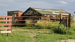 A westward-looking nation in 1869 united its eastern and western shores with the First transcontinental railroad, whose route traversed the Red Desert. University of Wyoming historian Phil Roberts described the notion of building a transcontinental railroad as "today's equivalent of the mission to Mars: Big, expensive and impossible".[13] The preliminary survey for the railroad produced the first map of the Great Basin and Southern Wyoming, according to author Stephen E. Ambrose.[14] The Red Desert's lack of water presented a problem for steam locomotives of the time. The Union Pacific Company found reliable water by drilling deep artesian wells in the desert. Some of these railroad wells, such as at Wamsutter continue to supply much needed water today for residents and the influx of oil and gas field workers who live in temporary housing or "man camps".