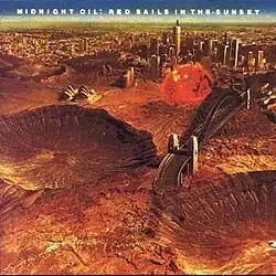 Red Sails in the Sunset is the fifth studio album by Australian group Midnight Oil which was released in October 1984 under the Columbia Records label. It was recorded and produced in Tokyo, Japan and is significant for becoming their first No. 1 album in Australia – it also entered the United States Billboard 200. The cover image, by Japanese artist Tsunehisa Kimura, depicts Sydney Harbour after a hypothetical nuclear strike. Some of its tracks were performed live in January 1985 at a Sydney Harbour Goat Island concert to celebrate radio station Triple J's 10th birthday, which was simulcast on ABC Television and subsequently re-broadcast on their then-Tuesday night music program Rock Arena. In 2004 the film footage later became part of a DVD album, Best of Both Worlds. Red Sails in the Sunset contains the only Midnight Oil tracks with lead vocals provided by their drummer Rob Hirst, "When the Generals Talk" and "Kosciusko". The album spawned two singles, "When the Generals Talk" and "Best of Both Worlds" but neither appeared on the Australian singles chart.