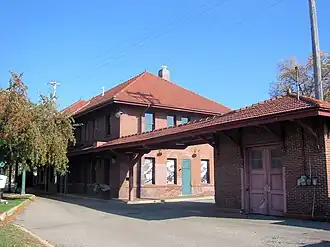 The Chicago Great Western Depot at 726 East Main Street in Red Wing, in the U.S. State of Minnesota, is a former railroad station listed on the National Register of Historic Places. The depot was built in 1906 after the Chicago Great Western Railway (CGW) acquired two small railroads: the Minnesota Central, which connected to Cannon Falls; and the Duluth, Red Wing, and Southern, which connected to Zumbrota. CGW established a divisional headquarters and built this depot in 1906, with passenger space on the first floor and office space on the second floor. The red brick structure was the largest depot the railroad built in Minnesota.[2]