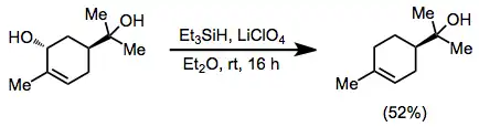 - ^ Wustrow, David J.; Smith, William J.; Wise, Lawrence D. (January 1994). "Selective deoxygenation of allylic alcohols and acetates by lithium perchlorate promoted triethylsilane reduction". Tetrahedron Letters. 35 (1): 61–64. doi:10.1016/0040-4039(94)88162-6.